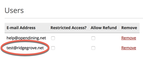 - You will now see the email address you entered listed under the Users section of the Manage Admins page